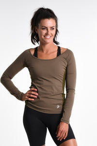 Scarlett long Sleeve Active Top - Khaki